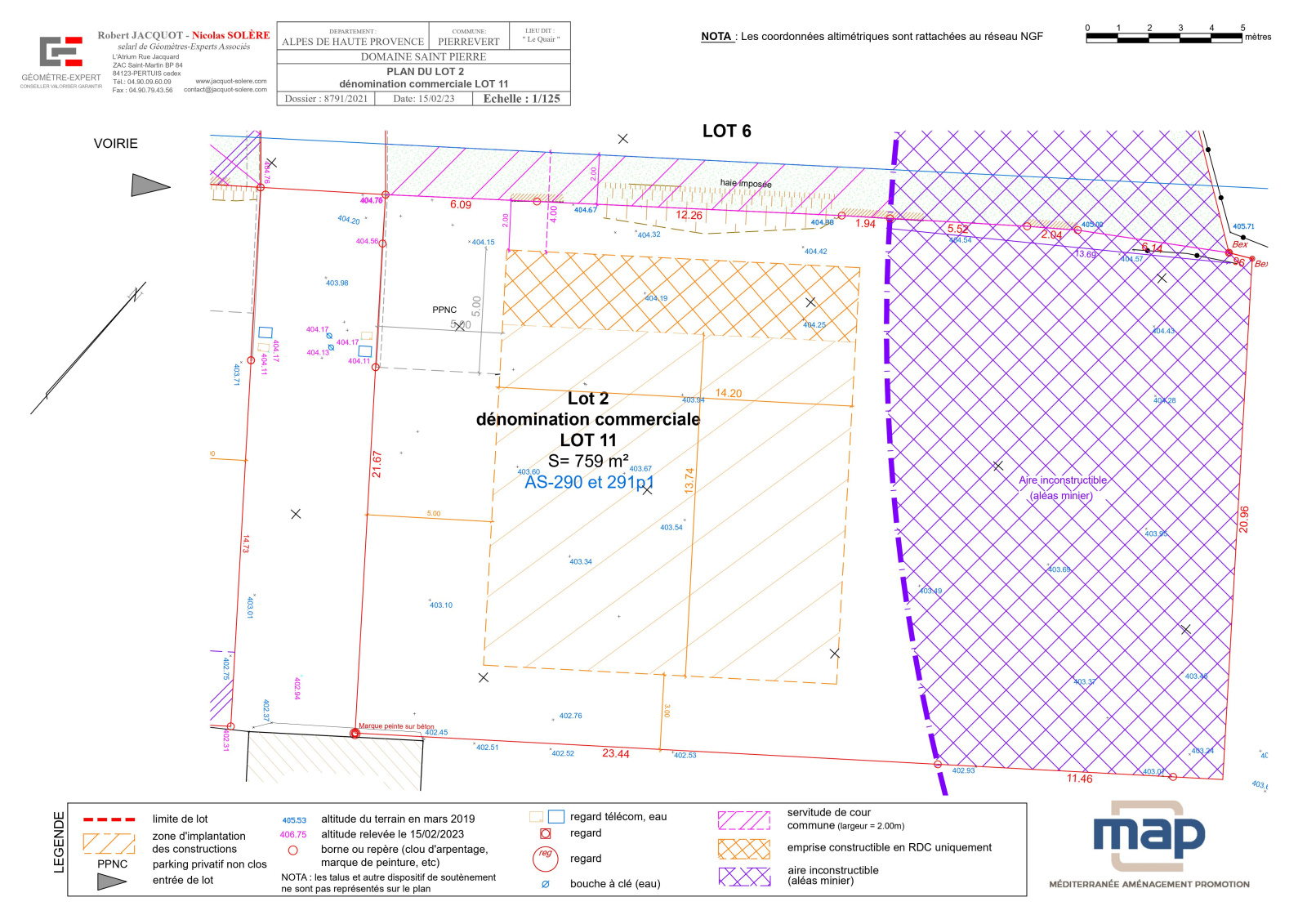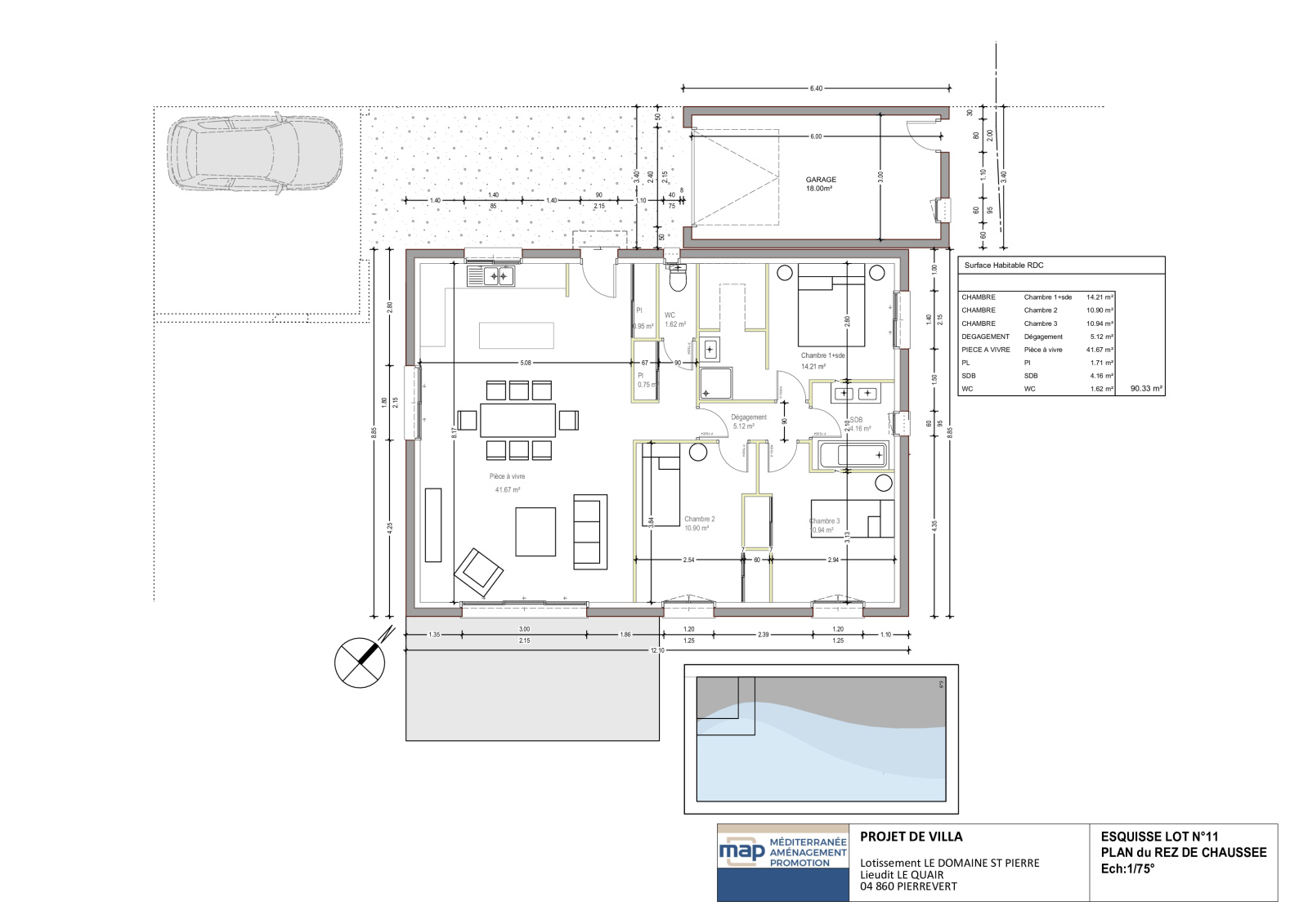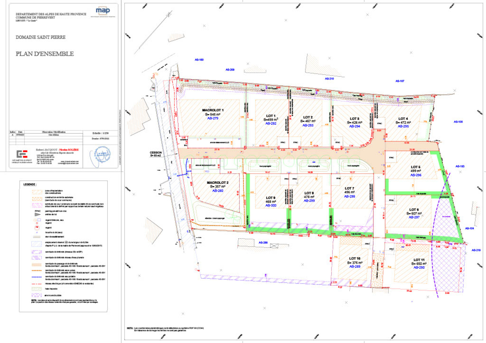 Découvrez le plan de vente du terrain accompagné de deux esquisses soit pour un projet de construction de plain-pied soit à étage dessinées par un architecte en fonction de la réglementation du lotissement, afin de vous permettre de faire chiffrer rapidement chez le Constructeur de votre choix !