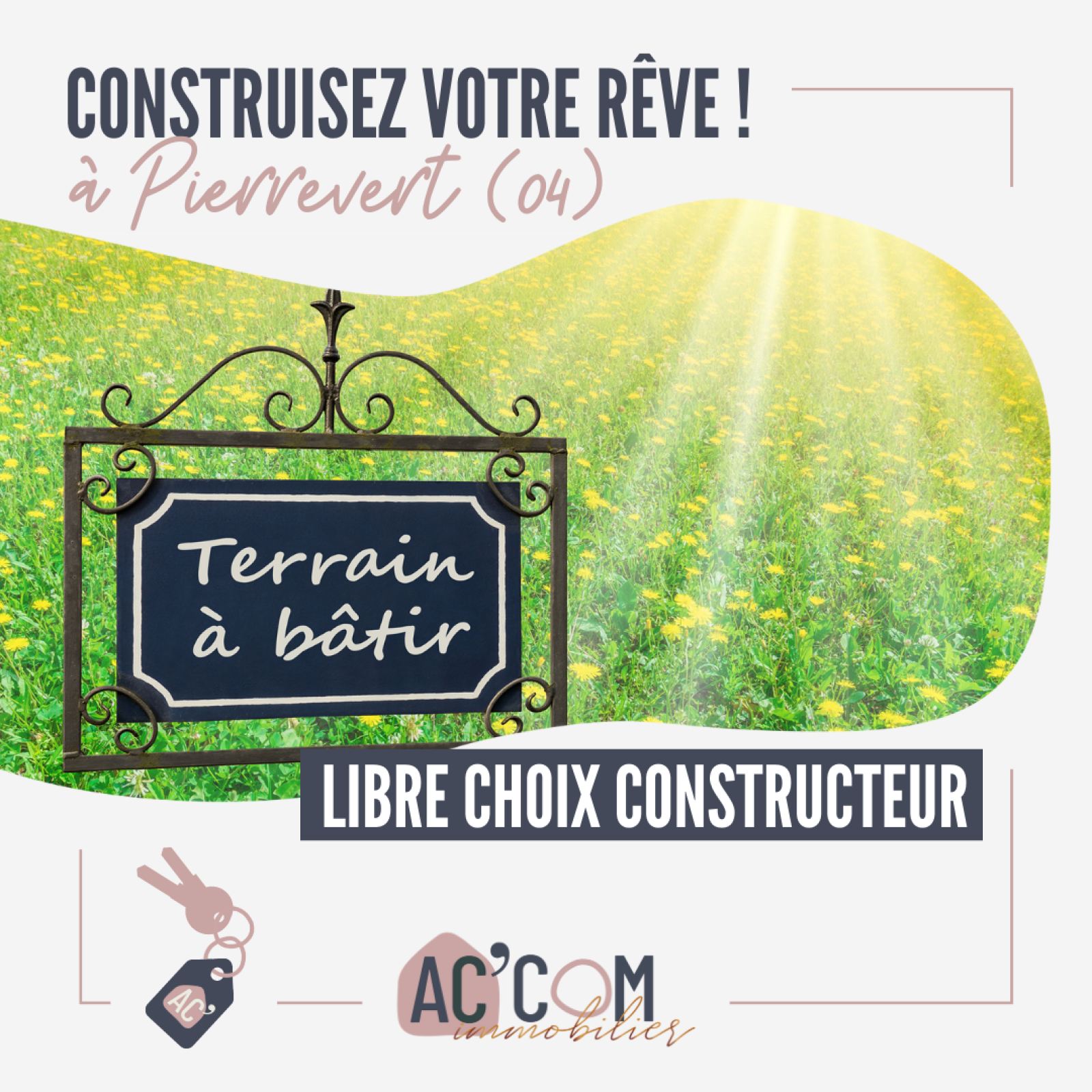 Saisir une belle opportunité avec un terrain à bâtir sur le territoire de Pierrevert. Vous aurez droit à une surface de 499m² pour édifier votre maison neuve. Si vous avez des questions, contactez dès à présent votre agence immobilière Ac'com Immobilier.Â