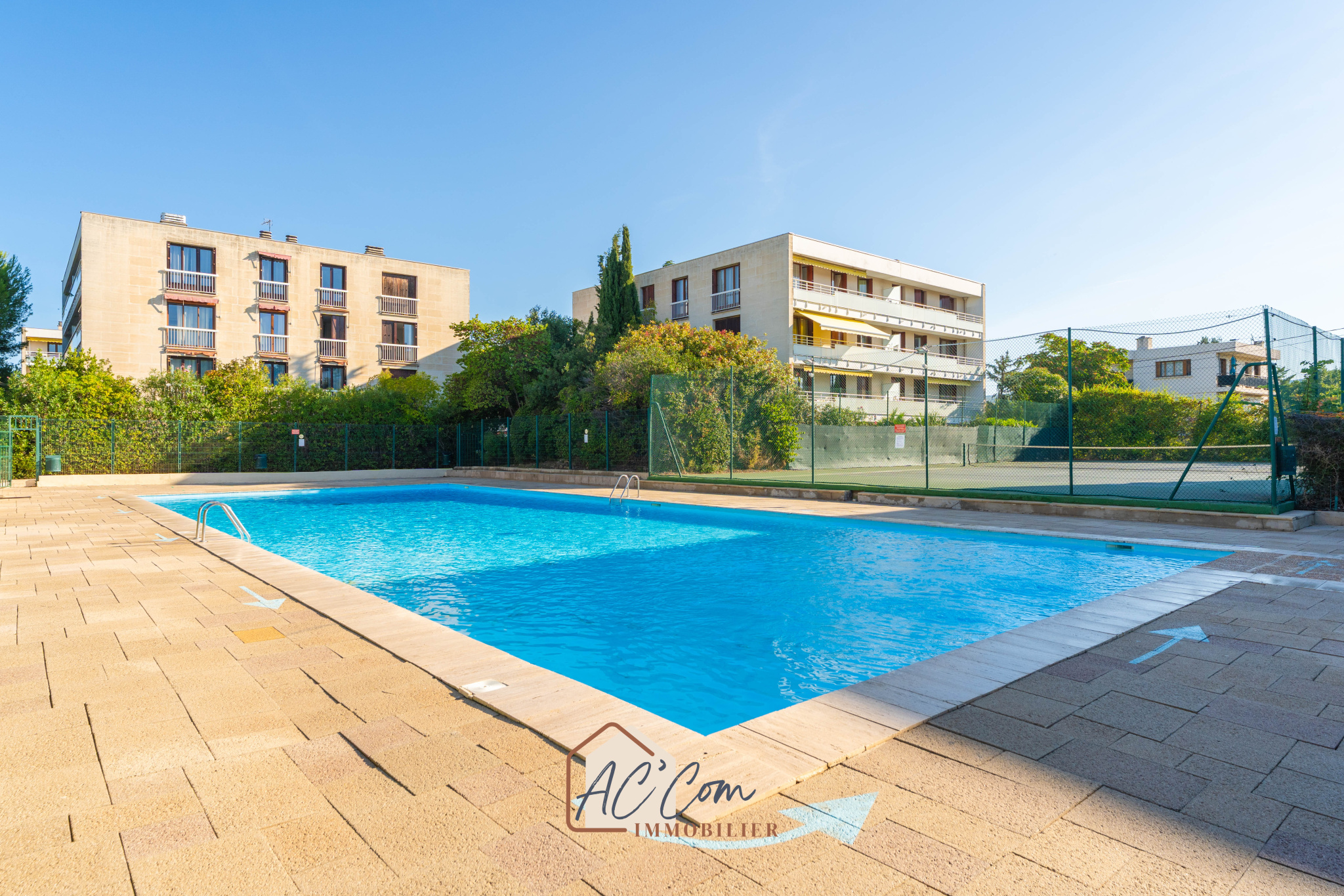 AC’COM IMMOBILIER vous propose à Saint-Julien, dans une résidence recherchée et sécurisée avec gardien, piscine et court de tennis, ce spacieux appartement T4 de 120m² situé au 3ème et dernier étage (sans ascenseur).