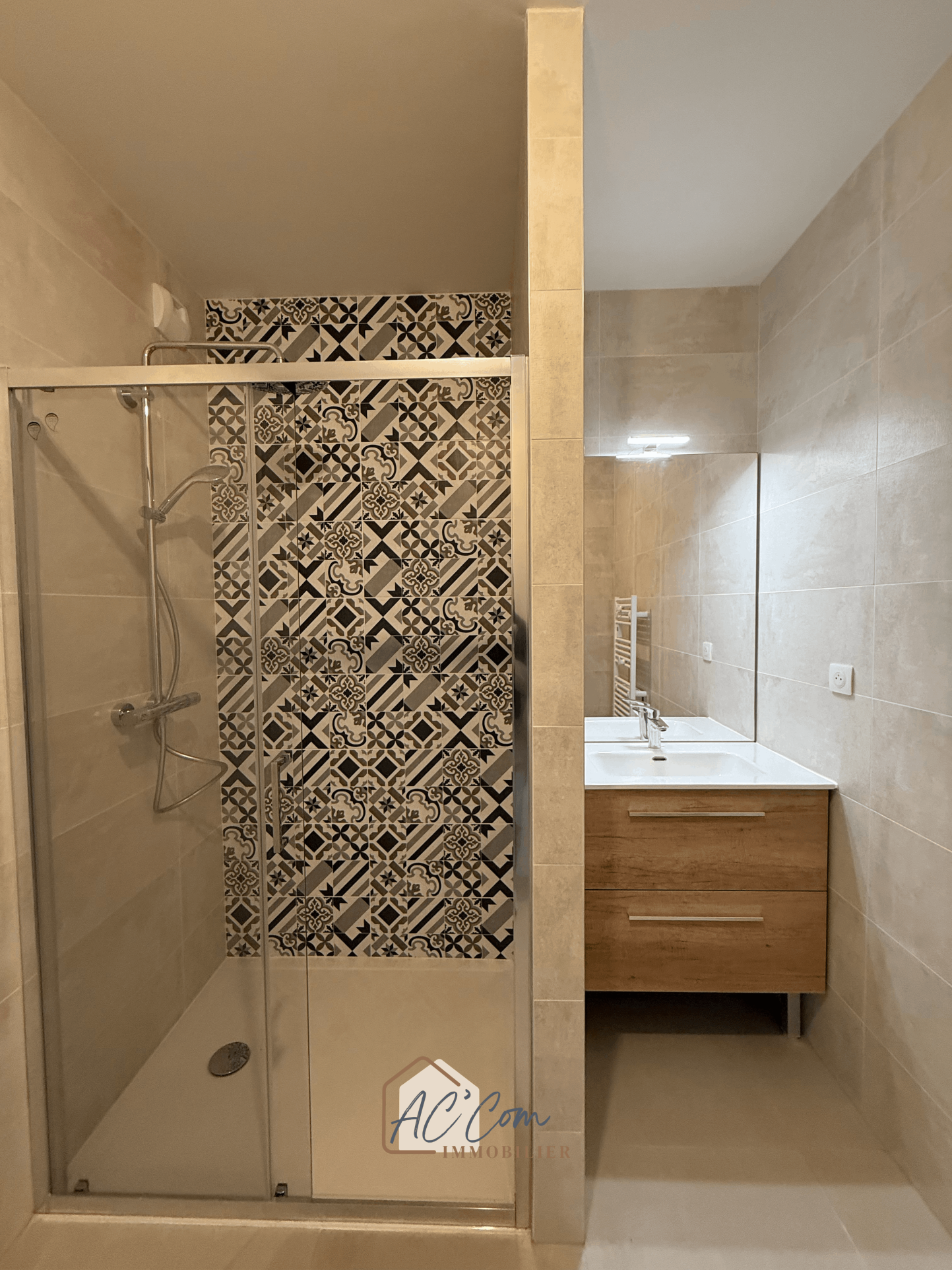 Prestations haut de gamme : système de chauffage reversible climatisation gainable en sous-plafond par par pompe à chaleur , menuiseries aluminium, volets roulants électriques, placards aménagés, badge VIGIK…